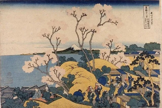 Painted by Saki no Hokusai Iitsu, "Thirty-six Views of Mount Fuji: Fuji from Goten-yama at Shinagawa on the Tokaido" (C)Shinagawa Historical Museum