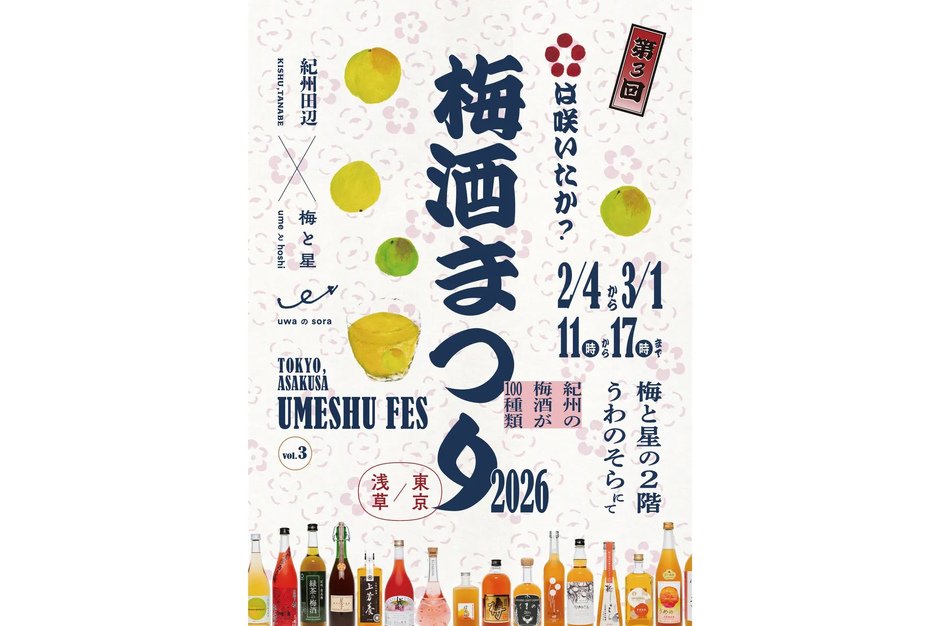 “Kishu Umeshu Festival 2026,” where you can enjoy 100 exquisite umeshu from Wakayama Prefecture, will be held again this year at Asakusa’s “Ume to Hoshi”!