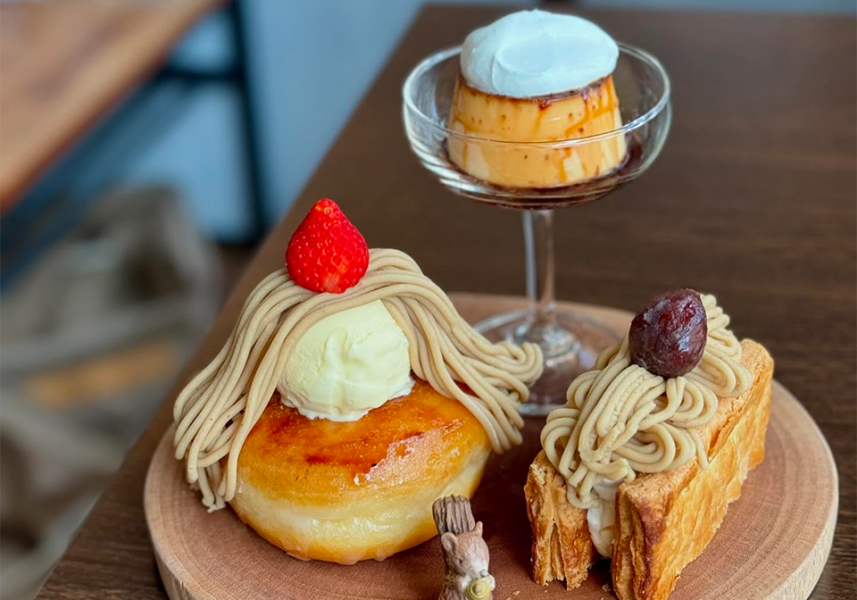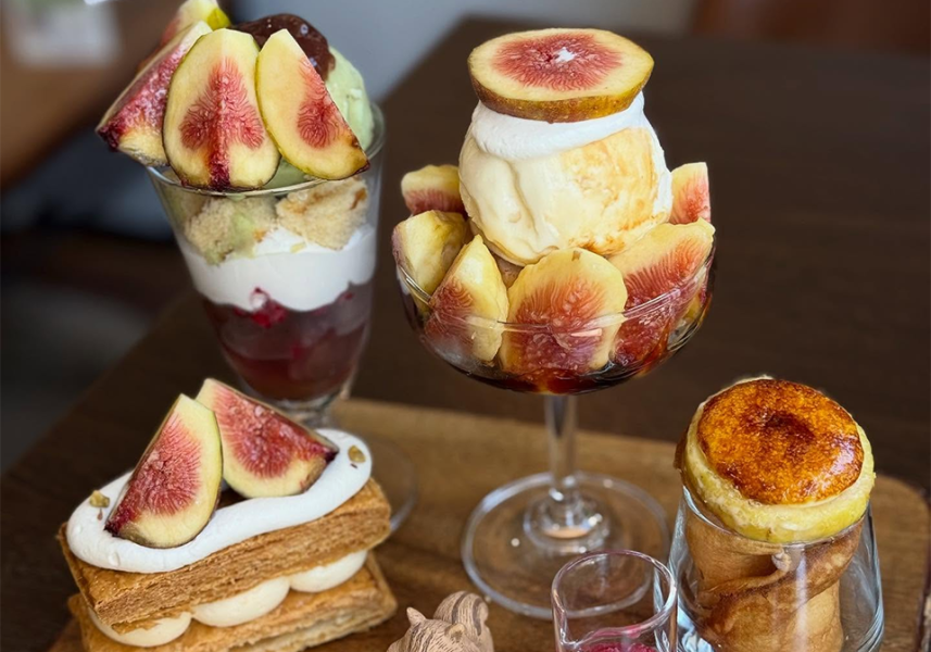 The natural interior filled with the warmth of wood, with gentle light streaming in through the windows, creates a cozy space to take a breather. Signature items include the crisp “Seasonal Mille-feuille,” assembled after your order is placed, and the rich “Caramel Pudding,” along with many desserts lavishly made with seasonal fruits. In particular, the mille-feuille that uses a whole peach is a popular item that requires a reservation.