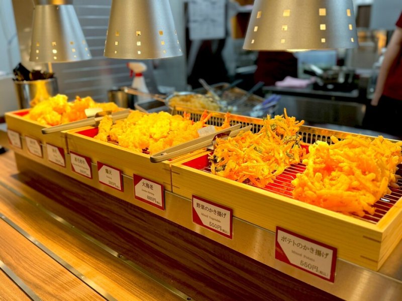 Inside, a dedicated tempura counter ensures each order is served freshly fried. From the classic “Large Prawn” to seasonal “Vegetable Kakiage” and the unique “Potato Kakiage,” we offer a wide variety. They pair perfectly with soba, making your meal even more satisfying.